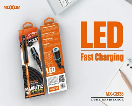 SPECIFICATIONS: – Brand: Moxom – Model: MX-CB38 – Color: Black – Magnetic Connector Design – 2.4A Fast Charge for Type-C