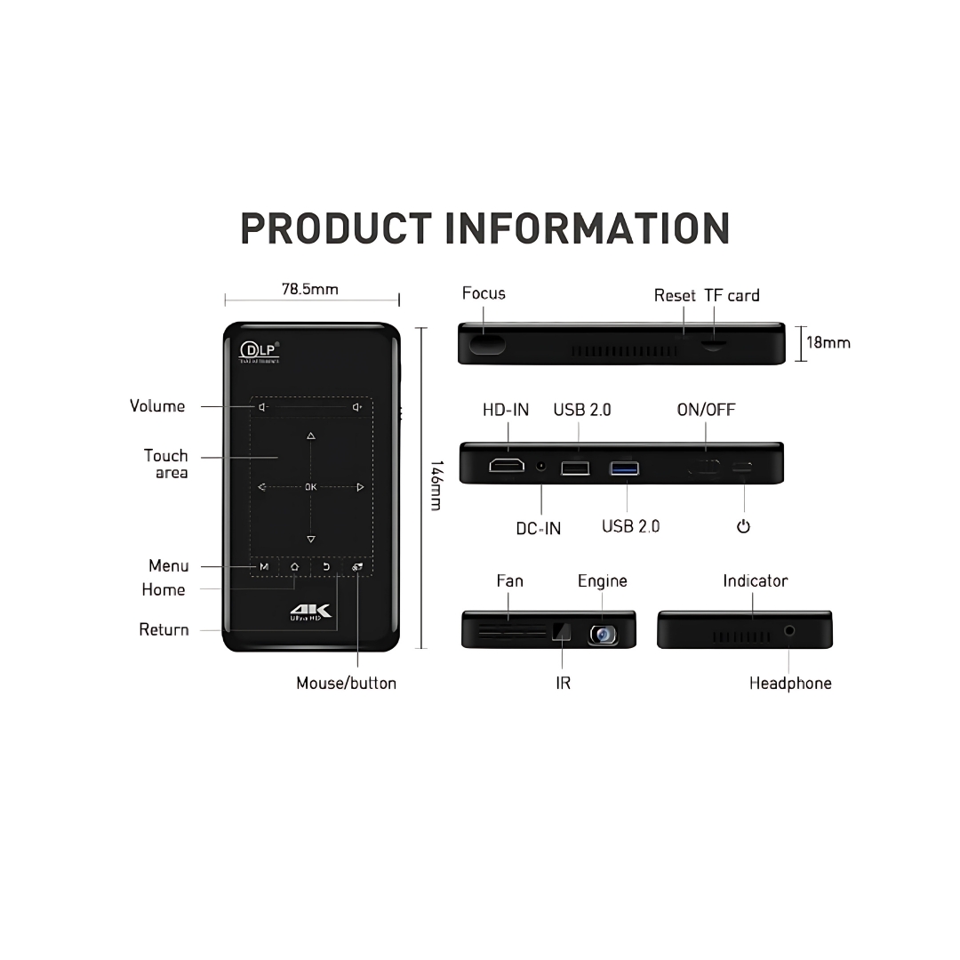 Transform any space into a personal cinema with the Borrego P09 Portable Mini Smart Projector. Designed with performance, portability, and style in mind, this compact powerhouse delivers 4K Ultra HD projection, smart connectivity, and immersive LED visuals. Whether you’re streaming movies at home, presenting at work, or entertaining outdoors, the P09 makes it easy to project big-screen brilliance anytime, anywhere.