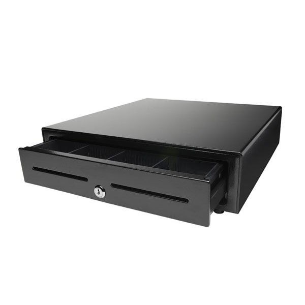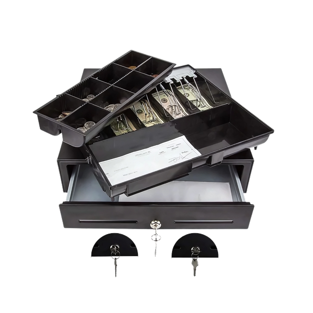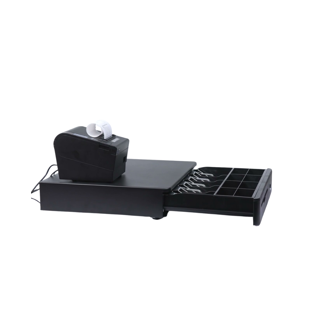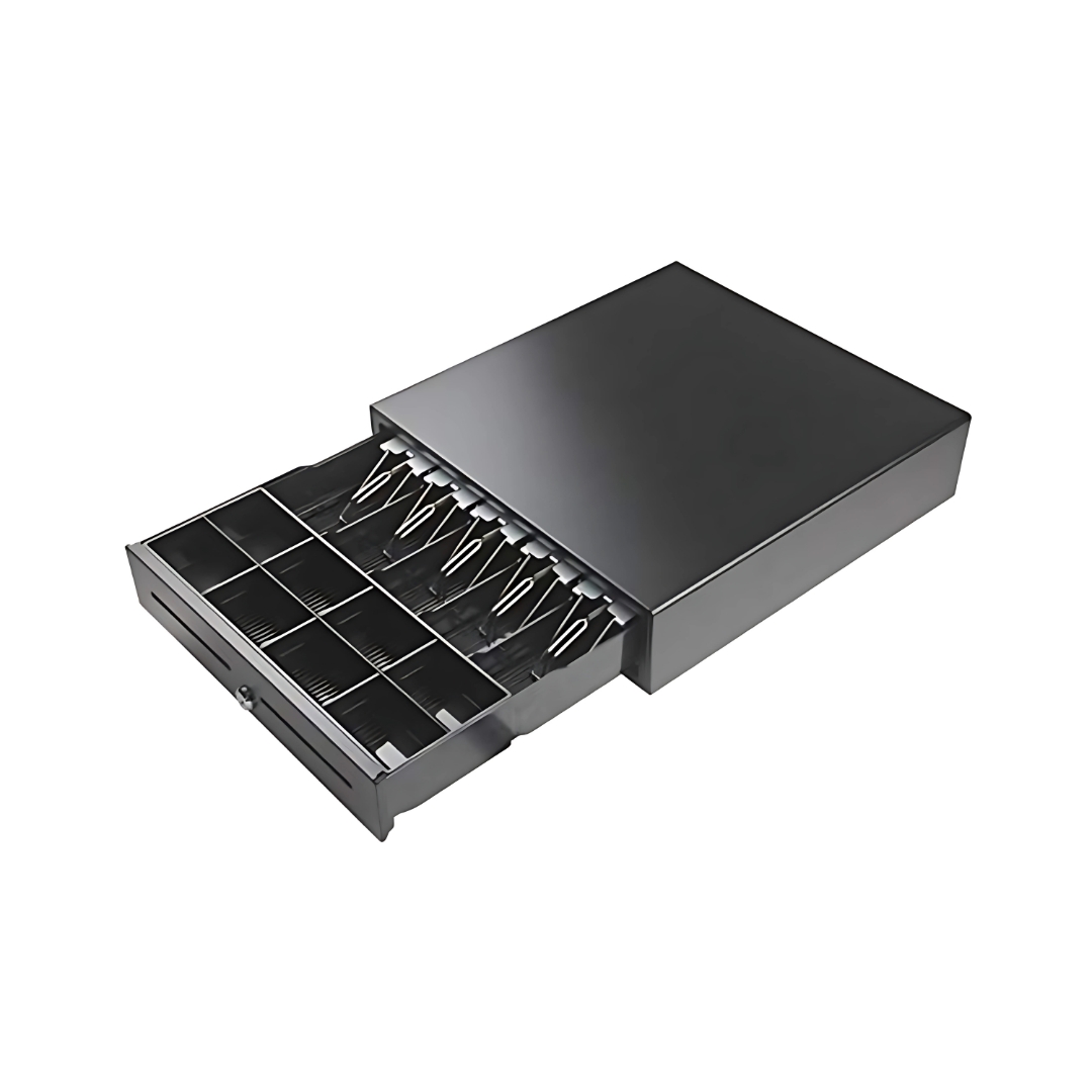 It features both electronic and manual operation, making it highly versatile. Use it with a thermal receipt printer for automatic opening or operate it manually with a key. The compact, sleek design fits perfectly on tabletops or under counters, ideal for supermarkets, restaurants, and retail stores.