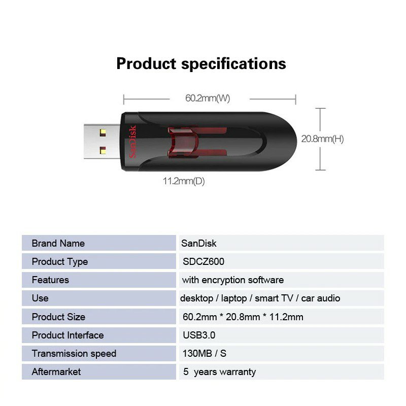 – Retractable design – No more hunting for that misplaced cap. The Cruzer Glide 3.0 USB flash drive features an easy-to-use retractable connector so it slides out of harm’s way and doesn’t need a cap.